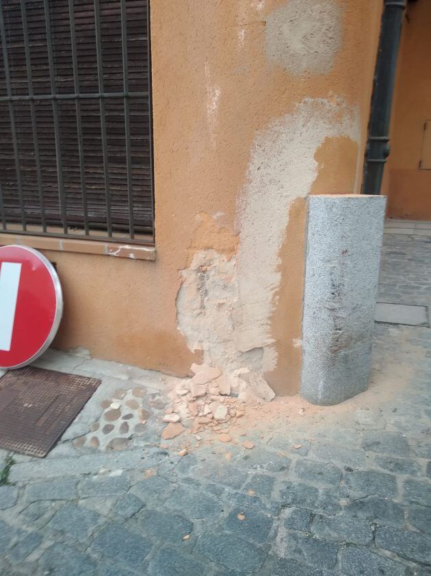El camión se ha quedado atascado cuando pretendía acceder a la Calle Martínez Campos. Ha provocado algunos desperfectos en la fachada