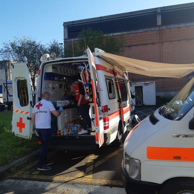 Cruz Roja de Irun, servirá bebida y dará apoyo a los transportistas para paliar las dificultades que tienen en sus rutas, en un espacio habilitado en la calle Europa de Zaisa.