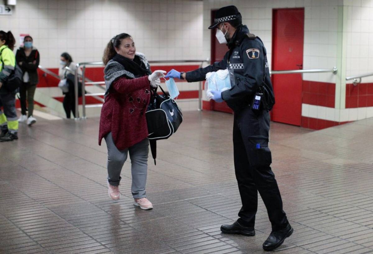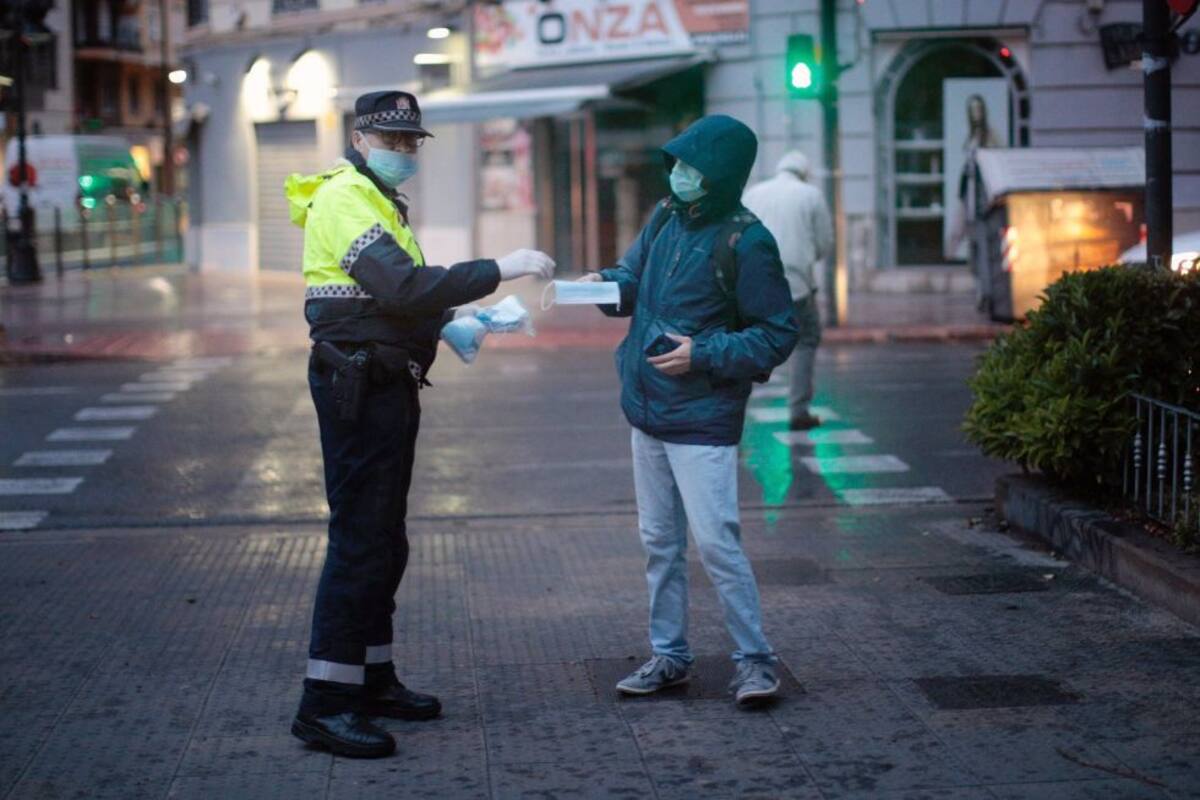 Distribución de mascarillas entre los ciudadanos en València