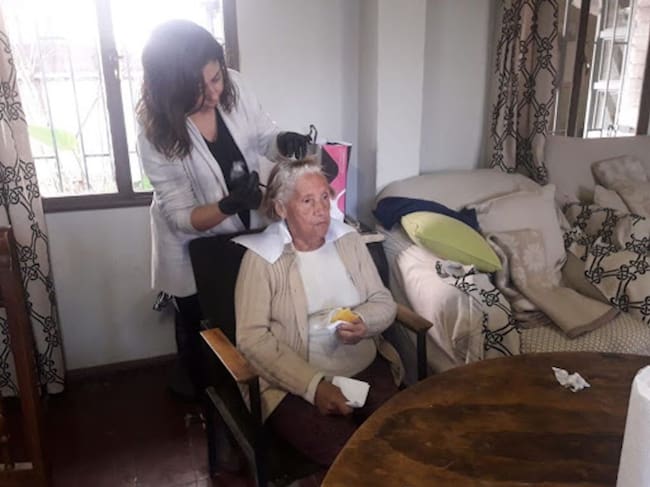 Una mujer dependiente recibe servicio de peluquería a domicilio / Fundación Padre Damian