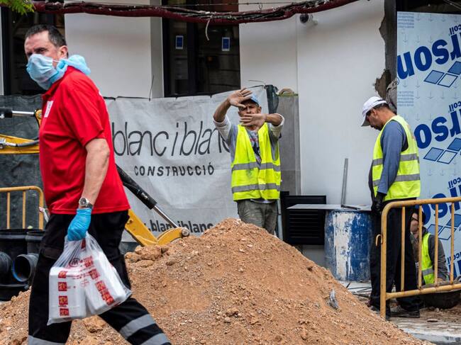 Varios operarios trabajan en una construcción hoy martes tras finalizar ayer la restricción a las actividades no esenciales / CATI CLADERA (EFE)
