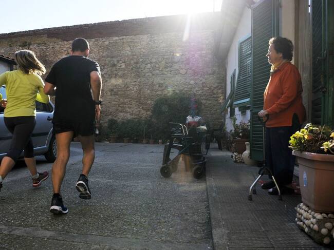 Una parella de runners a Itàlia. A partir de demà es podrà sortir a Andorra a fer esport una hora al dia en jornades alternes però amb mascareta, sols i guardant 10 metres de distància amb la resta de persones. / Laura Lezza (Getty Images)