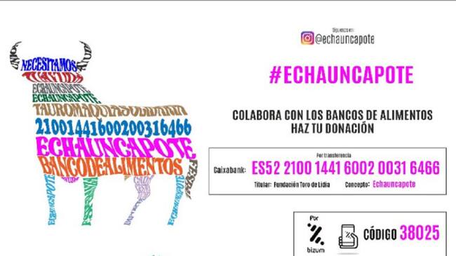 Ante la crisis sanitaria que estamos viviendo a causa de la pandemia del coronavirus, el mundo del toro vuelve a reaccionar con su cara más solidaria poniendo en marcha la campaña #Echauncapote en la que todo lo recaudado irá destinado a la Federación Española de Bancos de Alimentos (FESBAL).