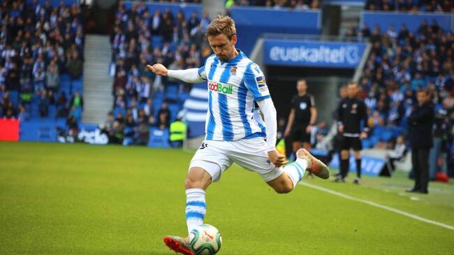 Monreal centra un balón en el Reale Arena / Archivo