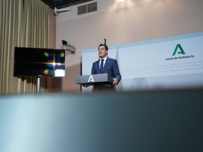 El presidente de la Junta, Juan Manuel Moreno, durante su comparecencia ante los medios / Junta de Andalucía