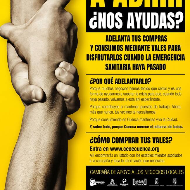 CEOE CEPYME Cuenca ha puesto en marcha una campaña para que los clientes puedan anticipar sus comprar y consumiciones en empresas de la provincia. Desde la Confederación de Empresarios recuerdan que las pequeñas y medianas empresas que han tenido que cerrar durante el estado de alarma van a sufrir gravemente las consecuencias de esta crisis con el riesgo de que no puedan volver a abrir sus puertas.