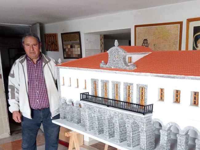 Daniel Jiménez junto a la maqueta del edificio del Ayuntamiento de Villacastín / CADENA SER