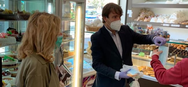 El Alcalde, Jesús Moreno, acompañado por la concejal de Desarrollo Económico y Empleo, Rocío García, ha iniciado una ronda de visitas por los comercios de la ciudad para dar a conocer la convocatoria de ayudas de emergencia que el Ayuntamiento ha puesto, en el marco del Pacto por el Impulso de Tres Cantos.