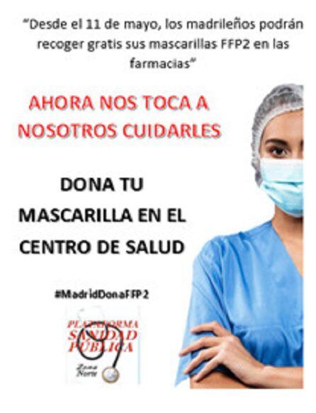 Sanidad Pública Zona Norte pide a los madrileños que donen las mascarillas gratuitas al personal sanitario