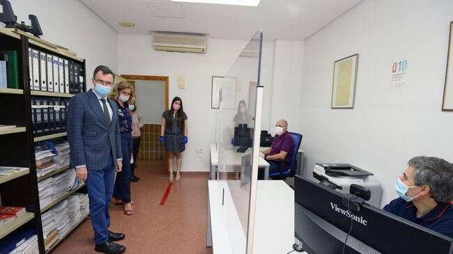 Más de 15.000 llamadas telefónicas atendió durante el periodo de aislamiento la Oficina de Atención Ciudadana de Murcia, según ha confirmado el alcalde de Murcia, José Ballesta, que junto a la concejala de Agenda Urbana, Mercedes Bernabé, ha visito este miércoles la Oficina de Puente Tocinos.
