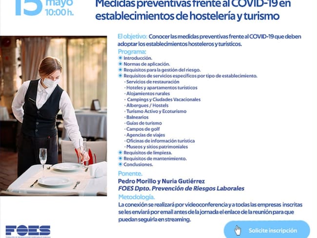 FOES dedica una jornada de formación gratuita a la prevención del COVID-19 en Hostelería y Turismo