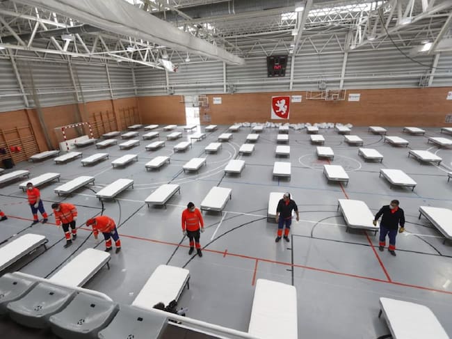 Las 90 personas que aún dormían en este pabellón municipal tienen nuevo destino. Mientras el consistorio desinfecta y guarda todo el material donado por las empresas para disponer de él en caso de rebrote, los usuarios han pasado al albergue y el refugio.