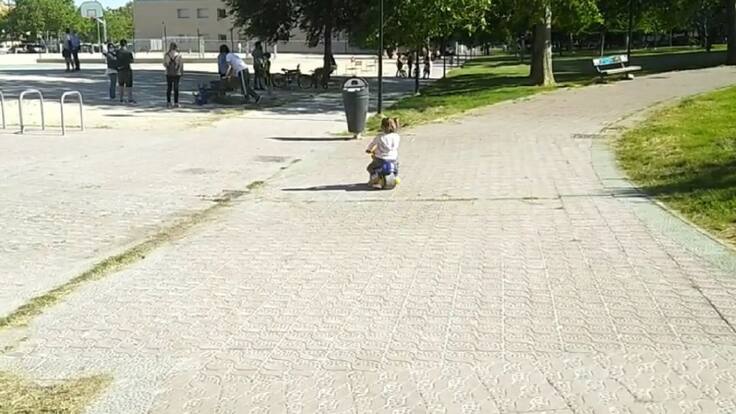 En casa, las chicas también se toman muy en serio lo de la nueva movilidad: moto de plástico, patinete… la mayor ha aprendido a ir en bicicleta sin ruedines.