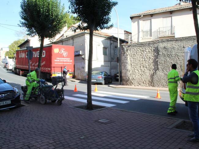 Imagen de archivo de trabajos de pintura vial para los que ahora el Ayuntamiento de Cuéllar contratará a un operario(Radio Cuéllar)