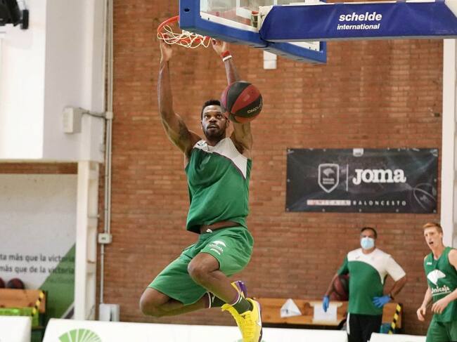 Frank Elegar machaca el aro en el entrenamiento del viernes / unicajabaloncesto.com