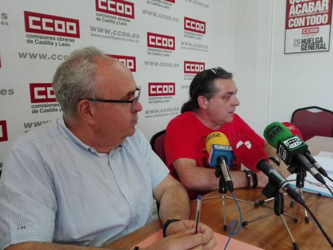 El responable provincial de UGT, Ángel del Carmen, y el secretario de Acción Sindical de Comsisiones Obreras, Antonio Salvador, durante una rueda de prensa / CADENA SER