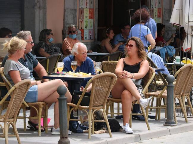 Un grup de persones prenen una cervesa en una terrassa de Palamós / Gerard Vilà (ACN)