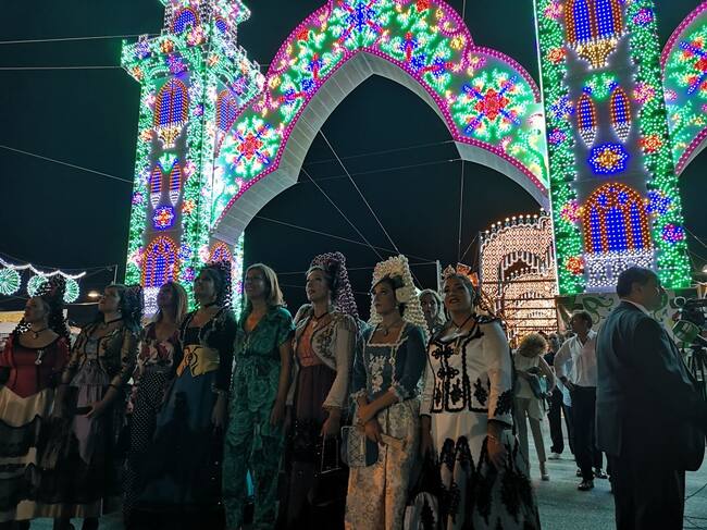 La alcaldesa de Ronda junto a las Damas Goyescas y su presidenta durante el encendido del alumbrado el pasado año en el recinto ferial Ángel Harillo. / Cadena SER