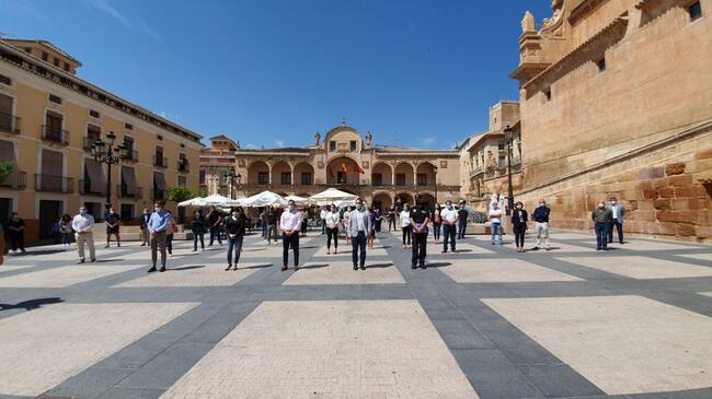 El Ayuntamiento de Lorca se ha unido este miércoles al reconocimiento nacional a todos los fallecidos a causa del coronavirus con un minuto de silencio en memoria de las víctimas que ha guardado la corporación municipal en la plaza de España.