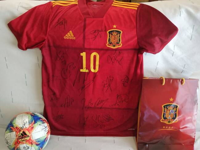 Una camiseta y un balón firmado por los internacionales que jugaron ante Rumanía en el Wanda, recaudará fondos para ayudar a Cruz Roja Ourense