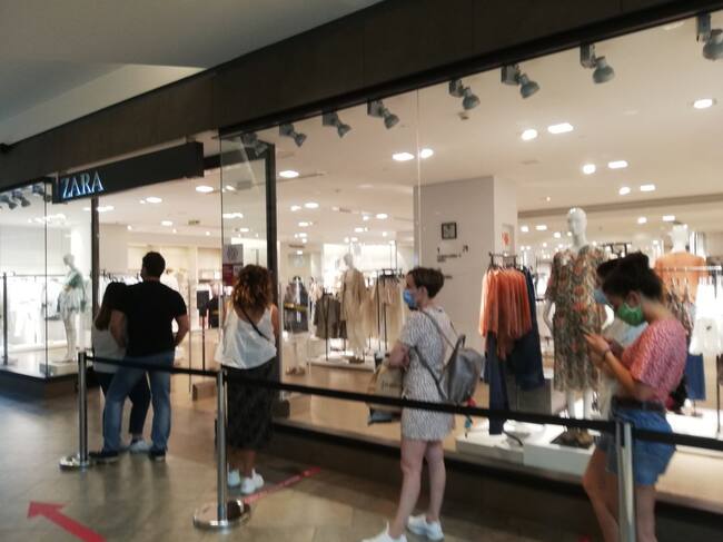 Más gente en la calle, mucho tráfico en la ciudad y cada vez más colas para acceder a cualquier establecimiento. 'Vemos más gente en la calle y hay más ambientillo' dicen dos habituales del paseo matinal en las inmediaciones del centro comercial que este lunes ha reabierto sus puertas a los clientes con estrictas normas de tránsito y desinfección para el acceso a los locales. De hecho, los guantes, las mascarillas, el control de aforo con señales acústicas en las tiendas y la proliferación de dispensadores de gel desinfectante además de un operativo de personas para ayudar el cumplimiento de las normas es lo único que ha cambiado en el centro comercial.