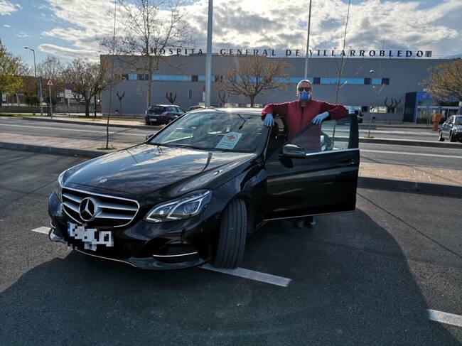 Juan José Hergueta con su taxi en las inmediaciones del Hospital de Villarrobledo durante la pandemia / Juan José Hergueta
