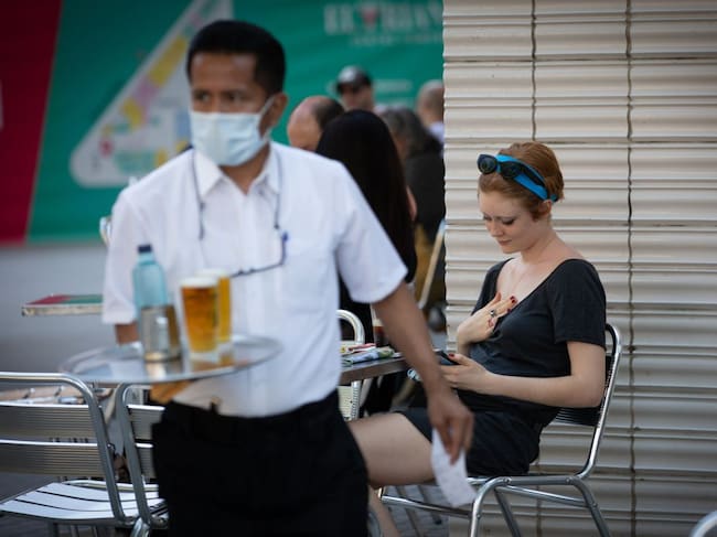 Un camarero sirve en la terraza de un bar / David Zorrakino (EUROPA PRESS)