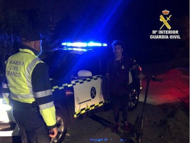 Momento de la detención del joven en patinete eléctrico por la N-550 de madrugada / Guardia Civil