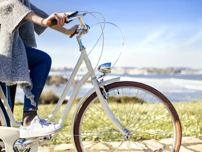 Una joven con su bicicleta y Gijón al fondo. / Getty Images
