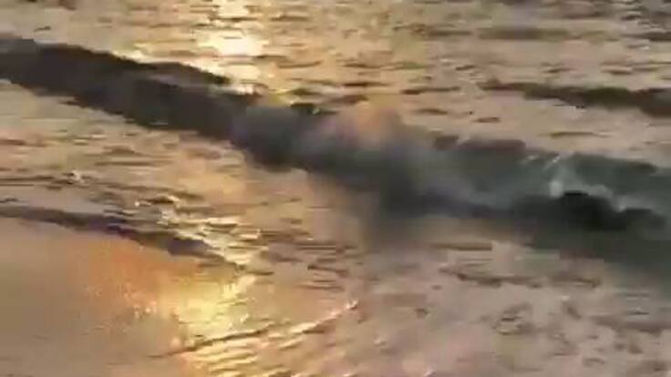 Moment de l'entrada de la tortuga a la mar captat per Guillem Alfocea i Hipólito Mercadal / Twitter Guillem Alfocea