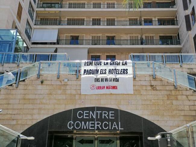 Arran ha desplegado una pancarta en Palma, bajo el lema: "Hagamos que la crisis la paguen los hoteleros, nos va la vida en ello".