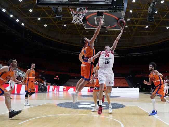 Carlos Alocén penetra a canasta en el último partido contra Valencia Basket / Basket Zaragoza