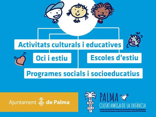 El ayuntamiento de Palma pone en marcha un Plan de Verano para los niños con 60 actividades en todos los barrios de Ciutat, 5.340 plazas de escuelas de verano, 1.300 plazas de cursos deportivos y apoyo escolar para 340 niños. Destacan 11 conciertos didácticos en diferentes barriadas, 10 proyecciones de cine familiar a la fresca y campus de verano