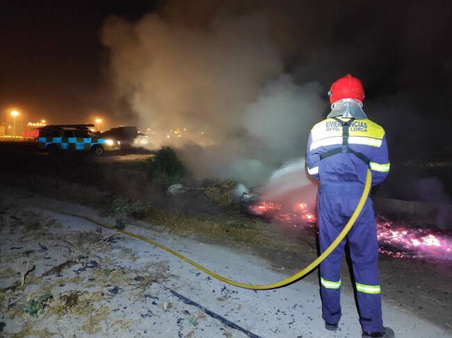 Un efectivo del Servicio de Urgencias interviene para apagar una hoguera. / Ayuntamiento de Lorca