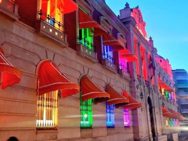 Fachada de la Diputación de Ciudad Real iluminada con los colores del arco iris en el Día del Orgullo LBTBI+ / Cadena SER