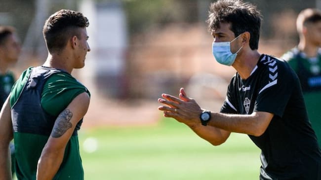 Con relación a los rumores que le sitúan en el Espanyol, afirma que "soy entrenador del Elche y no hablaré de nada"