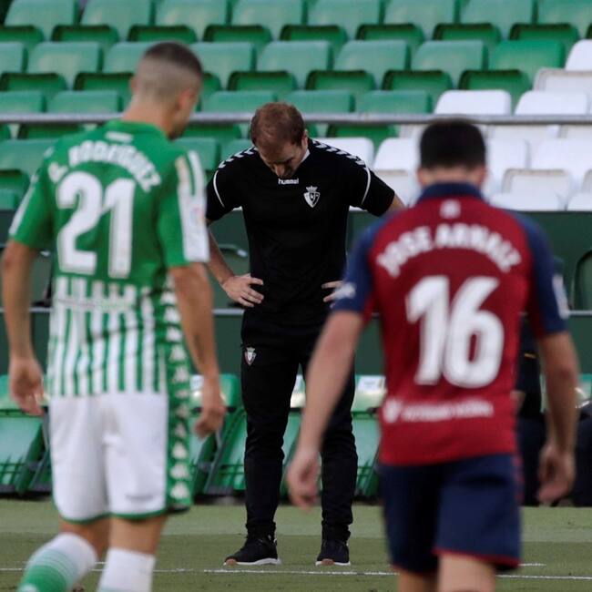 El entrenador del Osasuna, Jagoba Arrasate (c), durante el partido ante el Betis de la jornada 35 de LaLiga Santander / Julio Muñoz (EFE)