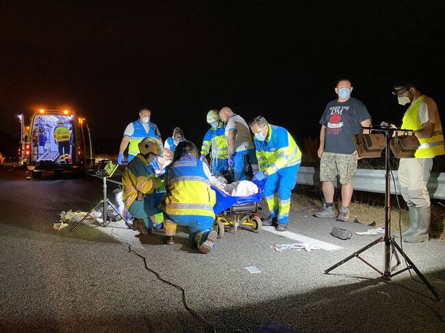 Cuatro dotaciones del SUMMA y la Guardia Civil se han desplazado hasta el lugar, donde han constatado que el conductor de la moto ha sufrido un traumatismo craneoencefálico severo y un traumatismo facial. Tras ser intubado, ha sido trasladado en una UVI móvil al Hospital 12 de Octubre con pronóstico grave.