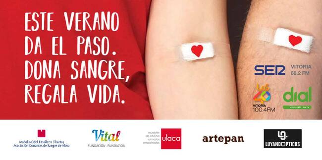 Con el lema "Este año da el paso. Dona sangre, regala vida", las emisoras vitorianas de Cadena SER, Los40 y Dial, -apoyadas en la Asociación de Donantes de Sangre de Álava y Fundación Vital Fundazioa-, lanzan una campaña de verano para animar a la donación en época estival. Y es que está siendo un año complicado para la donación de sangre. El confinamiento, las dificultades de movilidad durante ese periodo para las unidades de extracción, y la situación postconfinamiento, han causado un descenso en el número de donaciones.
