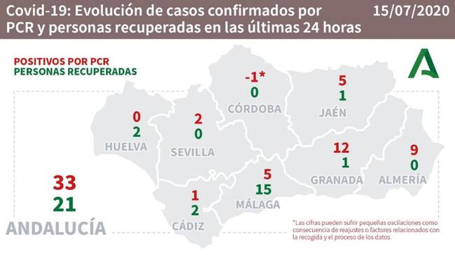 Datos del coronavirus por provincias. / Junta de Andalucía