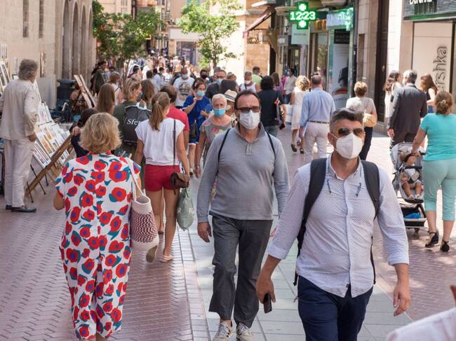 Transeúntes se protegen con mascarillas por las calles de Palma / ATIENZA (EFE)