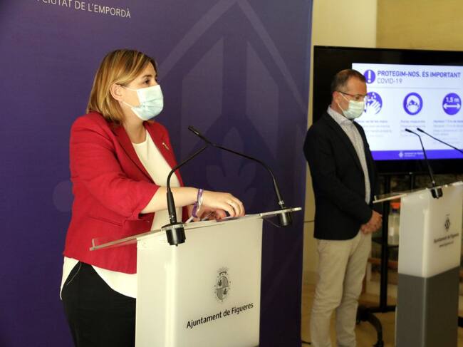 L'alcaldessa de Figueres, Agnès Lladó, i el vicealcalde, Pere Casellas, en la roda de premsa d'aquest dilluns / Marina López (ACN)