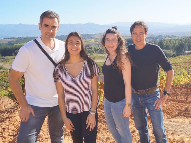 El profesor Santiago Alonso Palacio, las alumnas, Celia García López y Lara Fernández León, y el enólogo D. José Manuel Ferreira. / Santiago Alonso Palacio