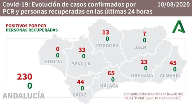 Datos del coronavirus por provincias. / Junta de Andalucía