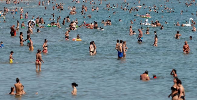 Bañistas en aguas de la playa de la Malvarrosa en una imagen reciente / Kai Försterling (EFE)