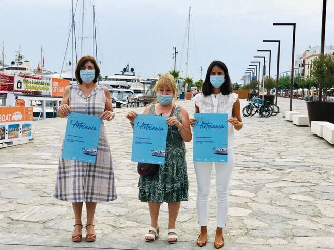 La consellera de Economía, Hacienda y Desarrollo Empresarial, María Fajarnés, junto con la presidenta de la Asociación de Artesanos de PIMEEF, Isabel Echávarri, han presentado la feria 'Viu l'Artesania' que se celebrará en el Puerto de Ibiza desde el 15 de agosto al 30 de septiembre en horario de 18 a 24 horas.
