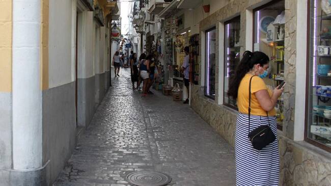 Una mujer con mascarilla por el centro de Tarifa. / EP