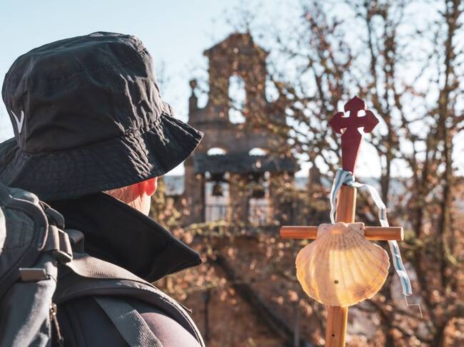 Peregrino con la concha de Santiago. / Getty Imágenes