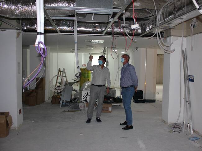 El delegado también visitó las labores de ampliación de la Unidad de Cuidados Intensivos (UCI), que se están realizando en lo que antes era la Sala de Espera de la propia UCI. Esta aplicación conlleva un aumento de 6 camas, que junto con las 10 de la actual UCI, suman 16 camas.