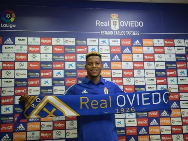 Cedric Teguia, en su presentación como jugador del Real Oviedo. / Real Oviedo